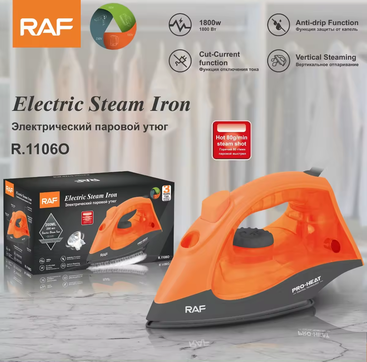 Be the first to review “RAF Electric Steam Iron, Orange, 1600 Watt, Model R.1106O” Cancel reply